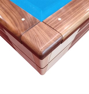 The entire cushionframe is made of the finest solid american walnut topped of with an exclusive laquer for long-lasting appearance. The Super Royal skittletables cushionframe also has integrated diamondsystem. For silent and stabil play the cushionframe is fitted to the slate with vertical bolts.